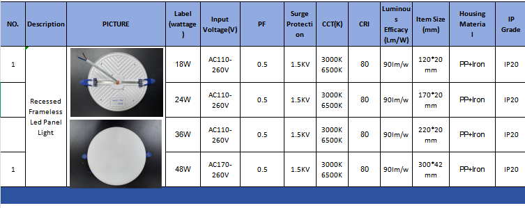Нашето светло со вградено LED панел без рамка комбинира елегантен дизајн со широк опсег на разновидност. Неговата висока популарност на пазарот го етаблира како водечки производ на нашата фабрика.